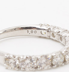 品質証明の刻印リングの内側にはダイヤモンドの総合カラット数「1.00」の刻印有り |