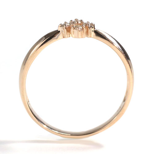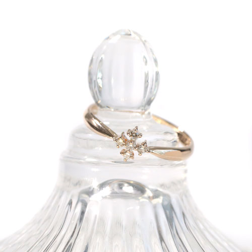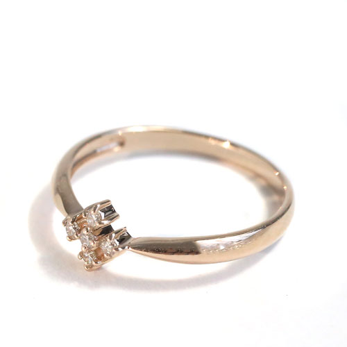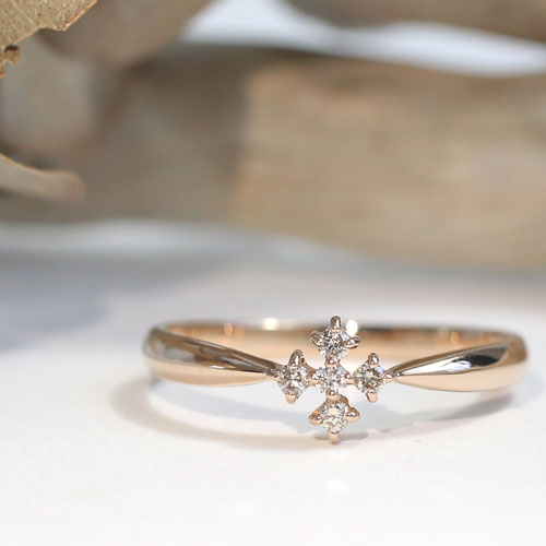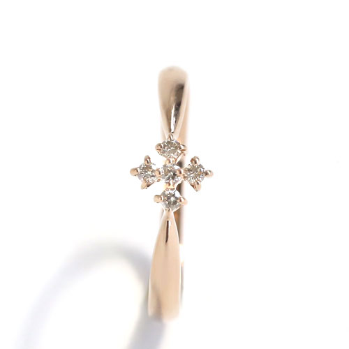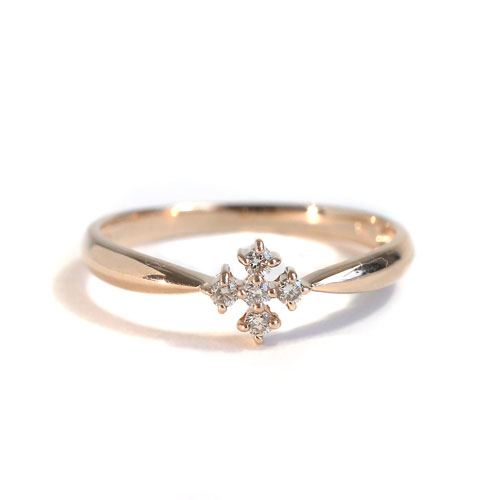 しなやかなシルエットとピュアな輝きに、うっとり…☆こんな、カッコよくてかわいいリングで、できる女&さりげなくエレガントを演出してみては!? すっきりと清楚なアームには、今女性に大人気の18金ピンクゴールドを贅沢に使用。 そしてその中央でひときわ存在感を放つのは、まばゆい光を放つダイヤモンド!一つ一つがとても澄んだ輝きをしていて本当に綺麗です。そんな美しい合計5ピースものダイヤモンドを、かわいいクロスのような、女性らしくエレガントなデザインに仕立てました。その美しい輝きは、まるで冬の澄んだ夜空に映し出された光り輝くイルミネーションの様…。冬の素敵な思い出を、永遠の輝きを放つダイヤモンドとともにあなたの指に飾ってみては。
