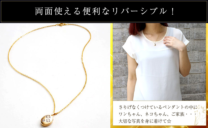 写真が2枚入ります。大切な写真・お気に入りの写真を2枚入れることができるペンダントです。 |