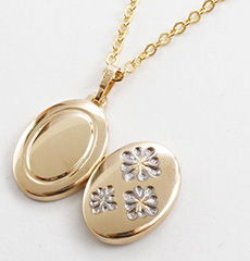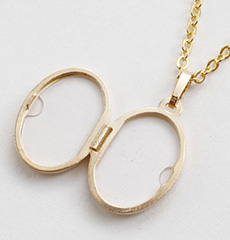 表と裏とでデザインの違うリバーシブル仕様の小さなオーバル・ロケットペンダント。
