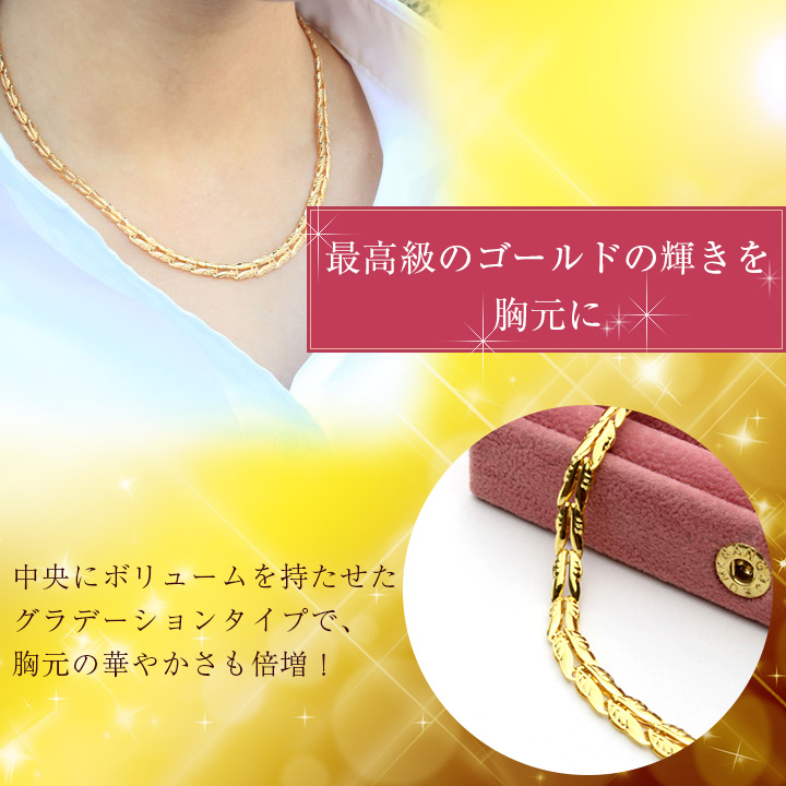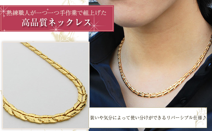 最高級素材である、24金を惜しみなく使用した、高級感あふれるデザインネックレス。