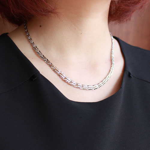 高価な純プラチナをたっぷりと使用し、熟練職人が一つ一つ手作業で組上げた高品質ネックレスが、
