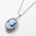 可憐な女性の彫刻を施したストーンカメオが付いたロケットペンダント。