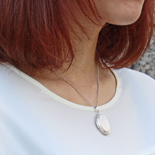 シルバー ロケットペンダント オーバル シンプル ライン MERZ 0236-LS08