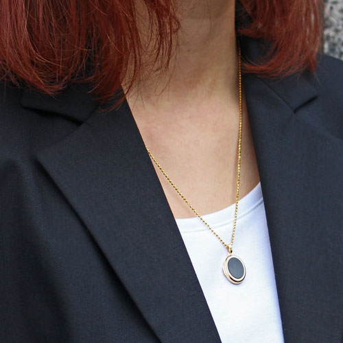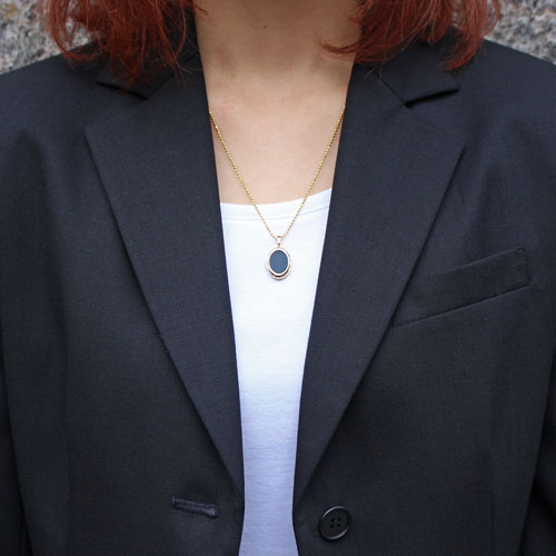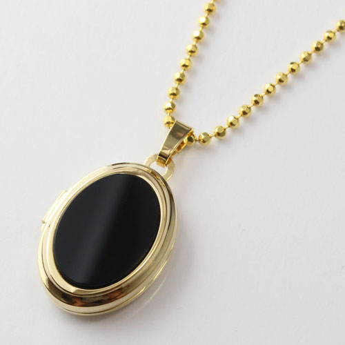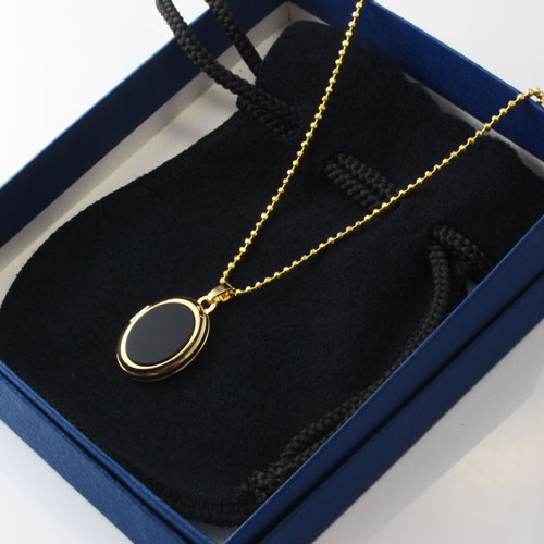 シンプルでペンダントとしても魅力のブラックなオニキスのオーバル・ロケットペンダント。