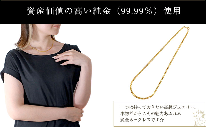 最高級素材である、純金(K24)を惜しみなく使用した、気品あふれるネックレス