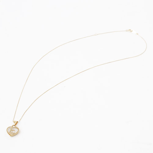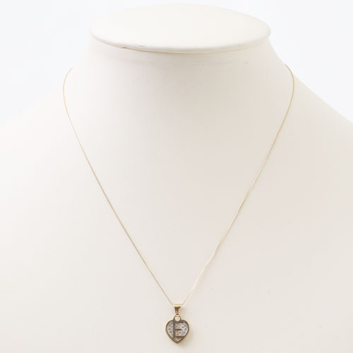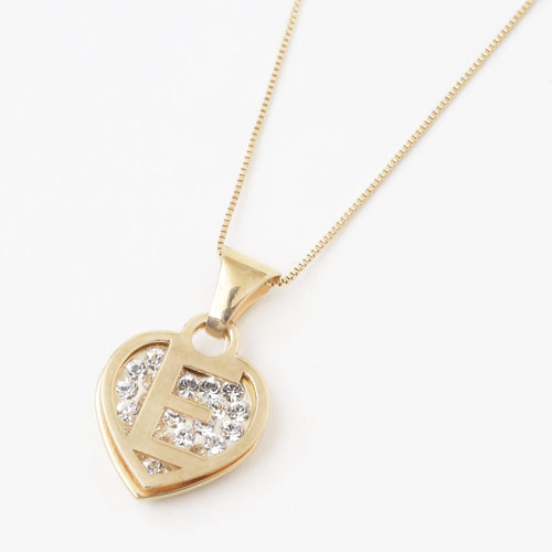 タイ製 9金 10金 ペンダント ハート イニシャル(E) クリスタル ベネチアンチェーン付 0301-PG08