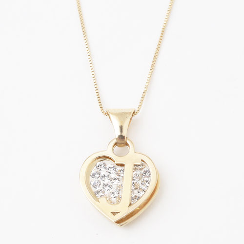 タイ製 9金 10金 ペンダント ハート イニシャル(J) クリスタル ベネチアンチェーン付 0303-PG08