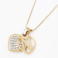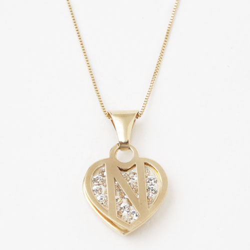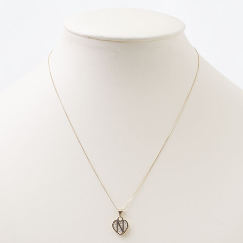 タイ製 9金 10金 ペンダント ハート イニシャル(N) クリスタル ベネチアンチェーン付 0306-PG08