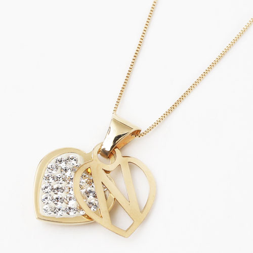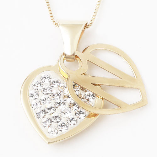 9金のかわいいイニシャルハート(N)にきらきらと輝くクリスタルを2重でセットし、