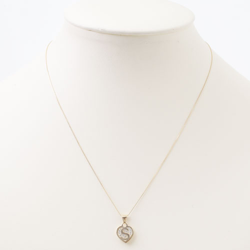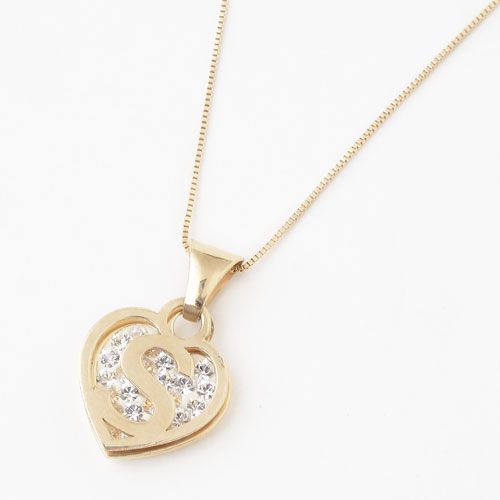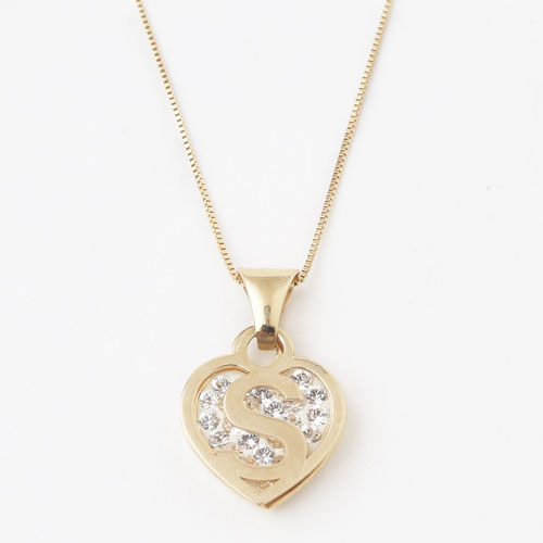 タイ製 9金 10金 ペンダント ハート イニシャル(S) クリスタル ベネチアンチェーン付 0308-PG08