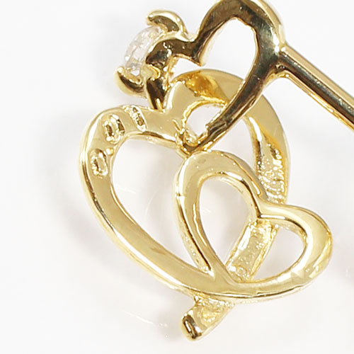 大小のオープンハートにダイヤモンドのアクセントを加えたさりげなくキュートな18金の本物ピアスです。ハートのモチーフは派手すぎず、合わせる洋服によってキュートな感じにもシックでクラシカルな雰囲気にもなります。落ちついたゴールドカラーは高級感があり、幅広い年齢層に受け入れられており、いつまでも飽きずにお使いいただけます。オープンハートが動くたびに耳元でキュートに揺れ、ダイヤモンドがキラリとさりげなく輝きます。大切な人へのプレゼントにも喜んでいただける逸品です。