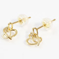 18金 ピアス ダイヤモンド付 オープンダブル ハート K18YG キャッチ式 0321-PG14