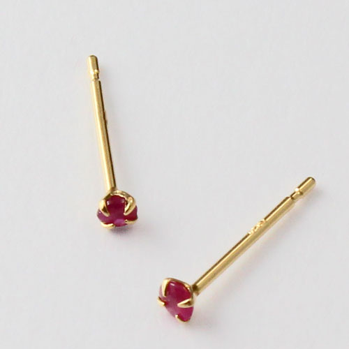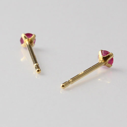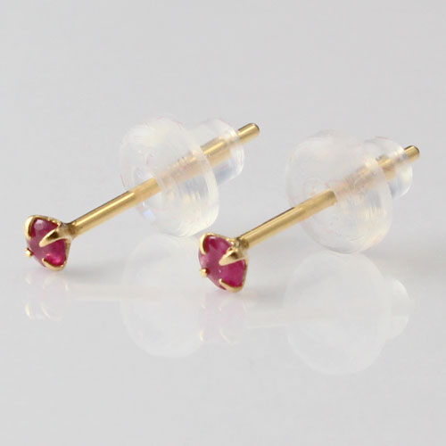 18金 イエローゴールド ピアス 天然ルビー 合計0.1ct シリコンキャッチ式 0327-IG08