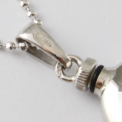 バチカン部分をねじって開け中に遺灰や遺髪を収めることができます。開口部は非常に小さいので、粉末状にしたものなどを納めてください。