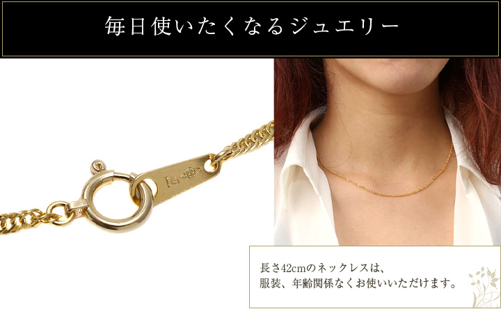最高級素材である、純金(K24)を惜しみなく使用した、気品あふれるネックレス。