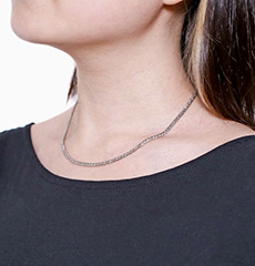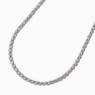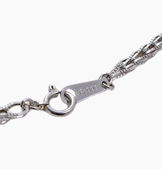 最高級素材である、純プラチナ(Pt999)を惜しみなく使用した、気品あふれるネックレス。普段の装いをぐっとエレガントに引き立ててくれます。42cmという、ゆとりのあるサイズで、なめらかに肌に沿うネックレスは、着け心地も抜群!また、貴金属製品の品位の証明、「Pt999(刻印)」が有り、素材と品質の良さも証明されています。純プラチナの板材からプレス機械で作られたパーツを熟練職人が丹念に組み上げて作られたセミハンドメイドのネックレスです。服装やシーンを選ばない飽きのこないデザインです。