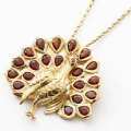 「エレガント&ゴージャス」天然ガーネットを合計7.0カラット使用。シルバーにゴールド仕上げ。バンコクにあるプランダジュエリーはタイで3本の指に入るジュエリー生産量を誇り世界中に輸出しています。最高の教育を受けたデザイナーたちが自由に自らの感性を表現できるので他社にない魅力的なジュエリーが誕生しています。きびしい基準のカラーストーンの選別と品質管理が世界一きびしい日本でいつまでも愛されるジュエリーを作るのです。プランダ社の熟練職人の技と合計7.0カラットの贅沢な天然ガーネット。地金部分にはシルバー925にゴールドコーティングを仕上げ、天然石をいっそう華やかに引き立てる演出しています。チェーンの長さは50cmと60cmをご用意しました。また、チェーンを外してブローチとしてもお使いいただけるようにシャダン式の留具を内側に取り付けています。◆送料無料◆合計7.0カラットもの天然石ガーネットを使ったペンダント兼用ブローチ。