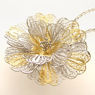 イタリア製 フィリグラーナ ペンダント 兼用 ブローチ 花 手作り 0523-PS08