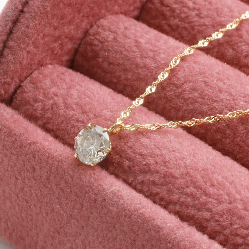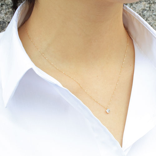 透明で、とても美しい輝きを放つダイヤモンドペンダント。Iクラスのダイヤモンドは、キズや内包物が肉眼でも確認できますが、なるべく内容物やキズが少ない、輝きのあるダイヤモンドを選んでいます。ダイヤの美しさが際立つように、余分な装飾は一切せず、シンプルな一粒ダイヤモンドのペンダントネックレスに致しました。トップとチェーンには、高級素材の18金を使用!!チェーンは、首元がすっきりと見えるスクリュータイプになっています。0.3カラットの普段使いにちょうど良いサイズで、全てに高級素材を使用したダイヤモンドペンダントは、どんなスタイルにもぴったりとマッチ!