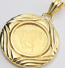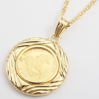 | 製品名: | 純金 コイン 1/25オンス ペンダント ホース/馬 【両面ガラス入】K18枠 0652-PG08 |