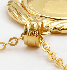 | 素材 | コイン(24金 1/25オンス約1.2g)枠(18金)クリスタルガラス、チェーン(真ちゅう金メッキ仕上げ) |
