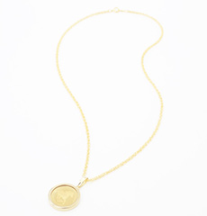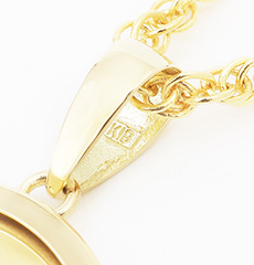 | 素材 | ・コイン(24金 1/10オンス約3.1g) ・枠(18金) ・クリスタルガラ ・チェーン(真ちゅう金メッキ仕上げ) |