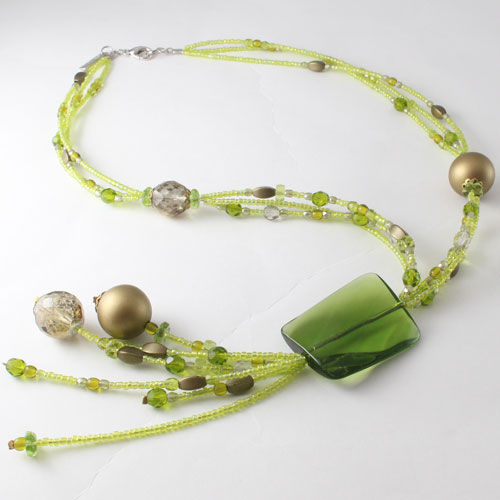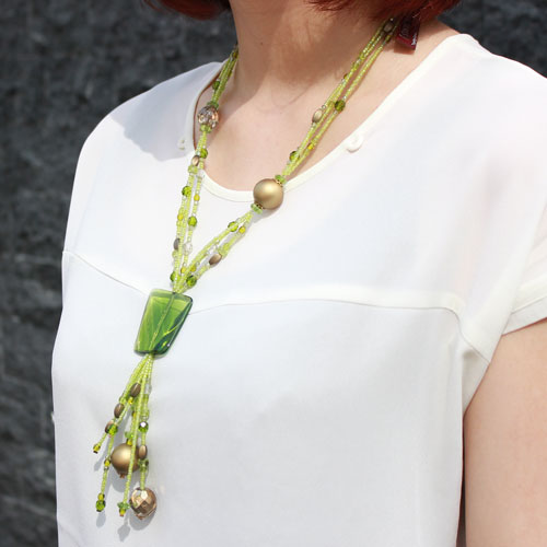 ベネチアングラス ネックレス イタリア製 グリーン Yチェーン【アヴェ・カプリース】 0688-NV09
