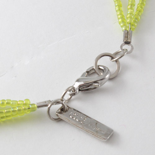 イタリアの最先端ファッションの都「ミラノ」。そこで活躍するジュエリーデザイナーのアヴェ・テッタマンティ。ベニスの熟練職人によるベネチアンガラスを使い洗練されたデザインセンスとイタリア人ならではの色使いを持ち合わせ、イタリアはもちろん世界中の大人の女性たちを魅了しています。彼女の作品は決して派手すぎずそれでいて絶対的な存在感があり、どんな服装にもコーディネートしやすいように考えられています。世界的に人気のYチェーンタイプを淡いグリーンカラーの上品な色合いとシェイプ。ベネチアンガラス、合金、樹脂を絶妙なバランスで使い、ボリューム感と軽い着け心地を実現。長さも今トレンドな約55cmプラス10cm。