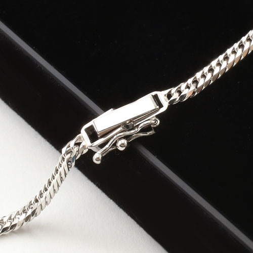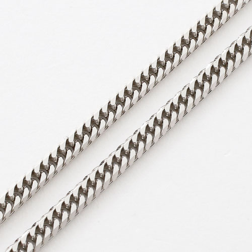 上下2面と斜めに4面カットを施しダブル(通常より細かく)で編み上げました。通常の2面カットに比べ圧倒的にカット面が多いため、光の反射面も多くなり輝きが断然違います。プラチナ850を12g以上も使い、これだけ価値のあるチェーンは大変買い得です。フォーマルの席はもちろん、シンプルで使いやすいデザインは普段のおしゃれにも最適!ひとつ持っていればとても安心。特別な時のために揃えておきたいジュエリーです☆当店の商品は、全て、ひとつひとつ厳しい検品、チェックを通過していますので、どうぞご安心ください。男性の方にも抵抗なく着けてもらえるデザインのキヘイチェーン。ペアーで持たれてもおしゃれです。