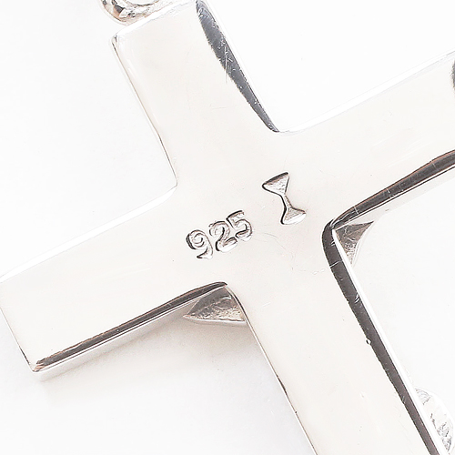 シルバーを贅沢に使用した、キュートなキリストクロスペンダント。遊び心いっぱいのデザインだからこそ、個性と話題がたっぷり。どんな服装にも合わせやすく、カジュアルはもちろん、オフィススタイルやフォーマルなスタイルに合わせて頂いても素敵です! また、ダイヤモンドやカラーストーンなど、お手持ちの一つ石ペンダントや、パールネックレスと重ね付けして頂いても素敵ですよ!印象の違う、華やかなペンダントとしてお使い頂けます。そのままつけても良し!他のペンダントと合わせれば、アレンジ次第でいろんな表情が楽しめる、毎日のお洒落に大活躍すること間違いなしのペンダントです!バチカン部分には、「925」の刻印が施されており、シンプルでありながら、見えない部分にも手の込んだ、こだわりを感じます。