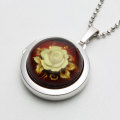 琥珀のかわいい花のラウンドロケットペンダント。