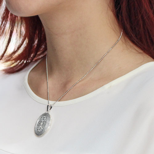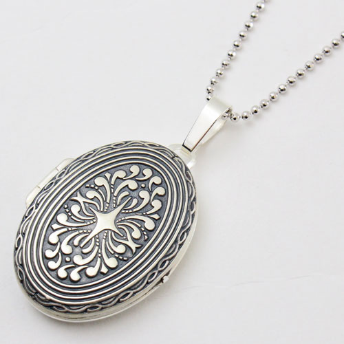 【本店限定価格】シルバー ロケットペンダント オーバル アンティーク調 MERZ 0815-LS09