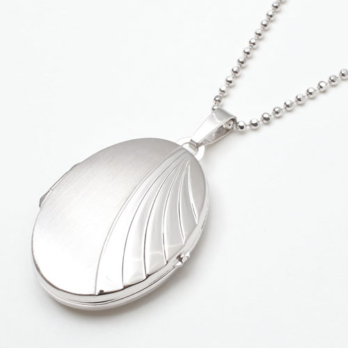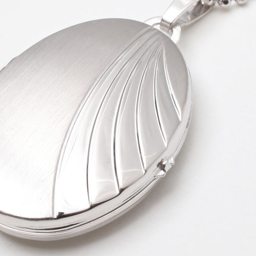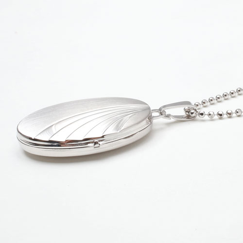 波のイメージの模様のオーバルロケットペンダント。シンプルなシルバー素材との組み合わせは派手すぎず、合わせる洋服によってキュートな感じにもシックでクラシカルな雰囲気にもなります☆立体感のある模様がボリュームたっぷりで高級感がありますよ。男性の方にも抵抗なく着けていただけるシンプルデザイン。裏側は艶消し加工を施していますので傷が目立ちにくく、その日の気分で使い分け。大切な人、大好きなペットの写真をこっそり入れて、お洒落にロケットペンダントを楽しんで☆