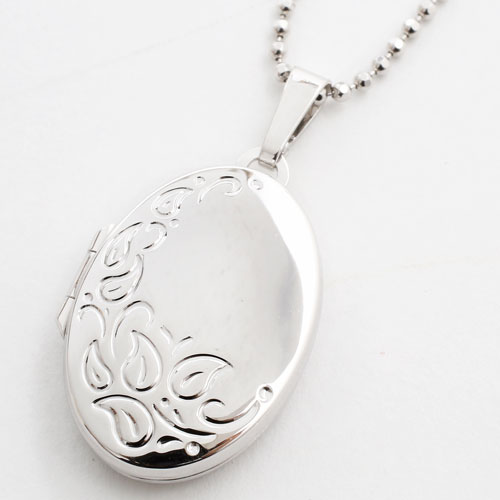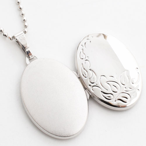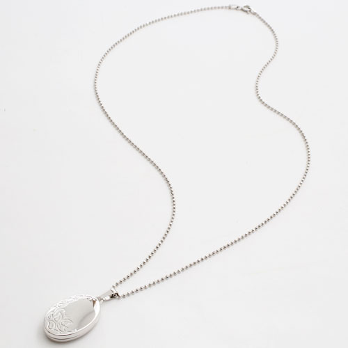 落ち葉のイメージの模様のオーバルロケットペンダント。シンプルなシルバー素材との組み合わせは派手すぎず、合わせる洋服によってキュートな感じにもシックでクラシカルな雰囲気にもなります☆立体感のある模様がボリュームたっぷりで高級感がありますよ。裏側は艶消し加工を施していますので傷が目立ちにくく、その日の気分で使い分け。大切な人、大好きなペットの写真をこっそり入れて、お洒落にロケットペンダントを楽しんで☆