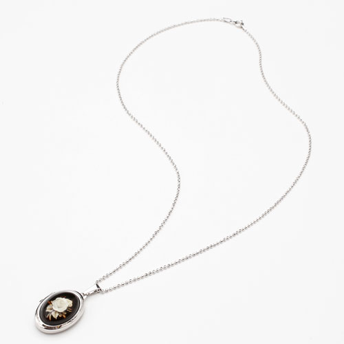 琥珀のかわいい花のオーバルロケットペンダント。シンプルなシルバー素材との組み合わせは派手すぎず、合わせる洋服によってキュートな感じにもシックでクラシカルな雰囲気にもなります☆立体感のある模様がボリュームたっぷりで高級感がありますよ。裏側は艶消し加工を施していますので傷が目立ちにくく、その日の気分で使い分け。品のある上品な琥珀のフラワーモチーフのロケットペンダントは大切な人、大好きなペットの写真をこっそり入れて、お洒落にロケットペンダントを楽しんで☆