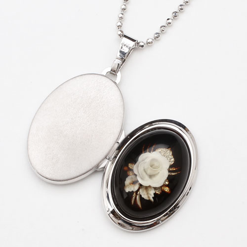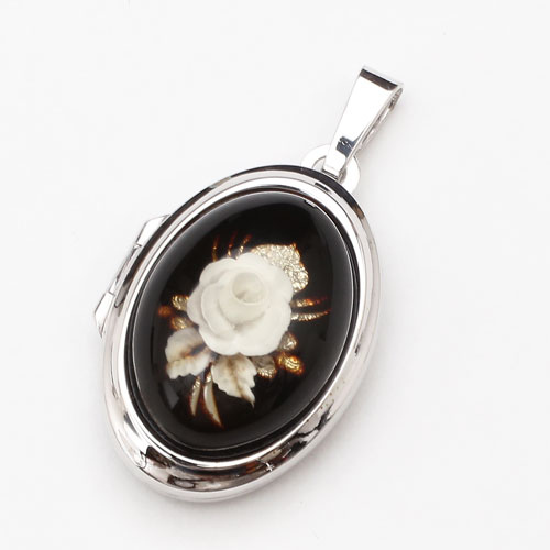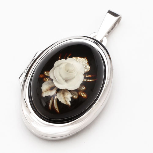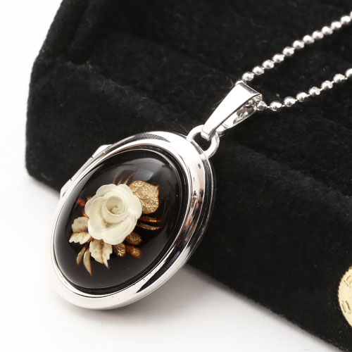 ドイツ製 SV925 ロケット 琥珀 フラワー ペンダント 0821-LS09