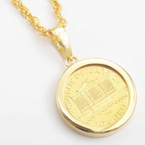 純金 コイン 1/10オンス ウィーンハーモニー・コイン金貨ペンダント 両面ガラス入り K18 デザイン枠 0899-PG09
