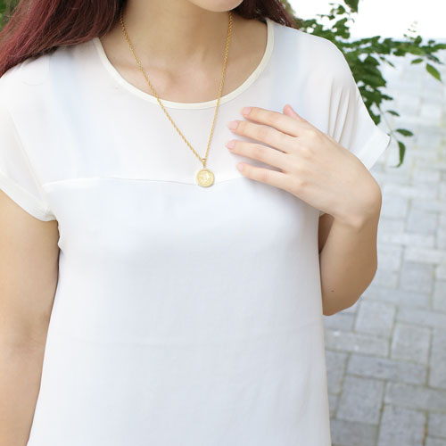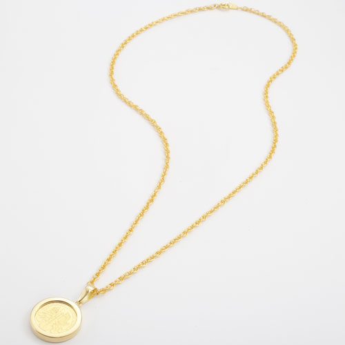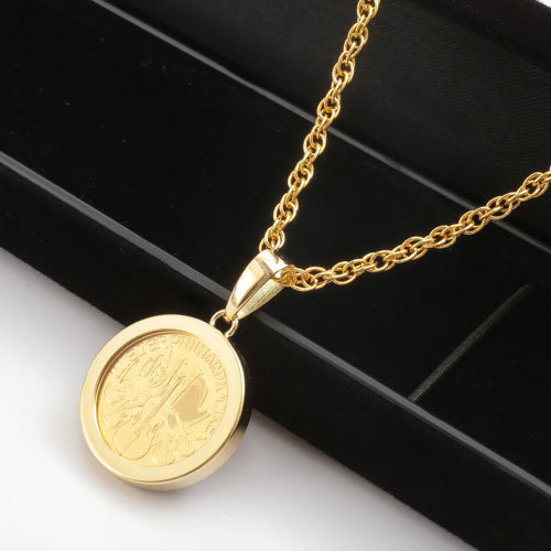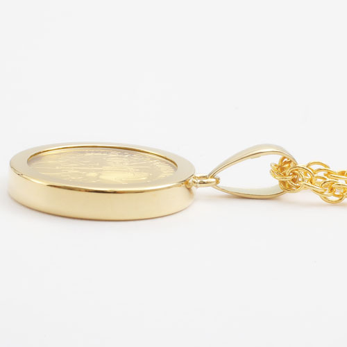 | 素材 | ・コイン(24金 1/10オンス約3.1g) ・枠(18金)クリスタルガラス ・チェーン(真ちゅう金メッキ仕上げ) |