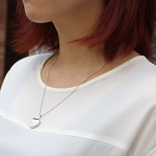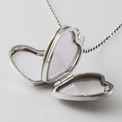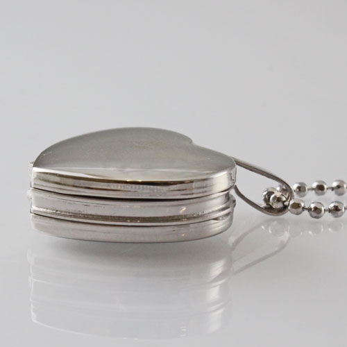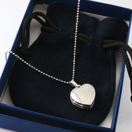 シンプルでペンダントとしても魅力の写真が4枚入るシルバーのハート・ロケットペンダント。