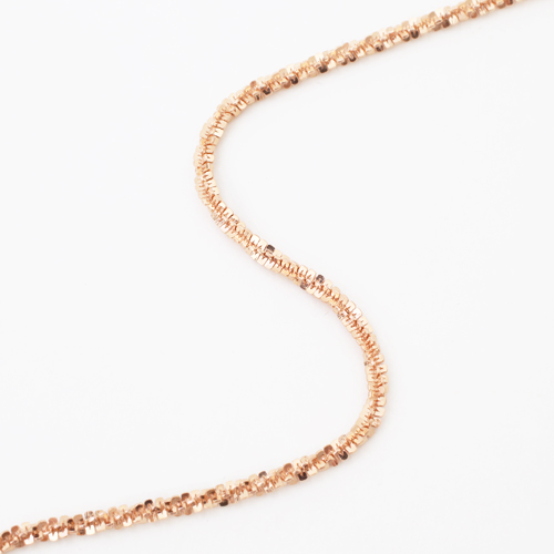 イタリアならではのクリスクロスチェーンはキラキラと輝きお持ちのどんなトップにも容易に合わせることができます。もちろん、十分なボリュームがあるのでそのままネックレスとしてもお使いいただけます。重ね着けにもお勧めです。