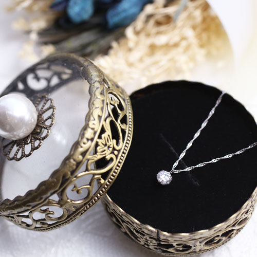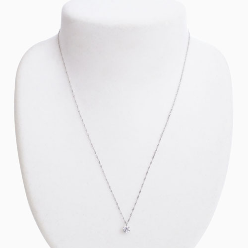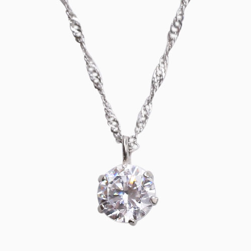 0.5カラットの一粒キュービックジルコニアは、見た目にも大きく、着ければその存在感はかなりのもの!!最高級の輝きが、首元をぱっと明るく、華やかに演出してくれます。お手頃価格で普段使いにもぴったりのペンダントです。
