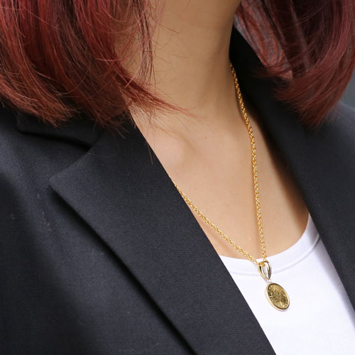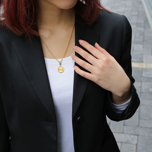 | 素材 | コイン(24金 1/10オンス約3.1g)、枠(18金)チェーン(真鍮ゴールド仕上げ) |