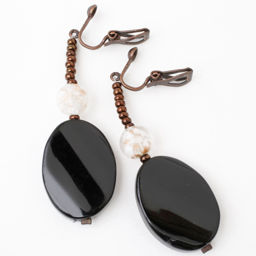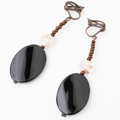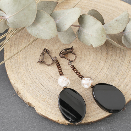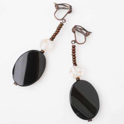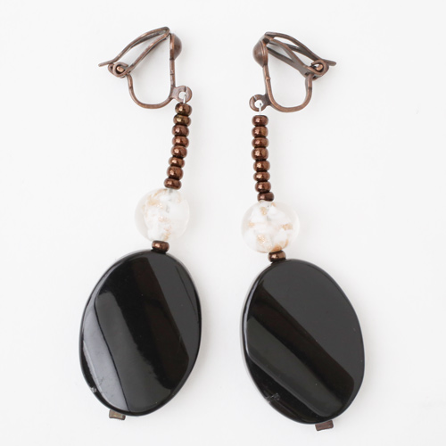 どんな服装にも合わせやすい上品な色合いとシェイプ。ベネチアンガラス、樹脂を絶妙なバランスで使い、ボリューム感と軽い着け心地を実現。使いやすいクリップ式の留め具も特徴。 これからの季節、プレゼントにもぴったりですよ。