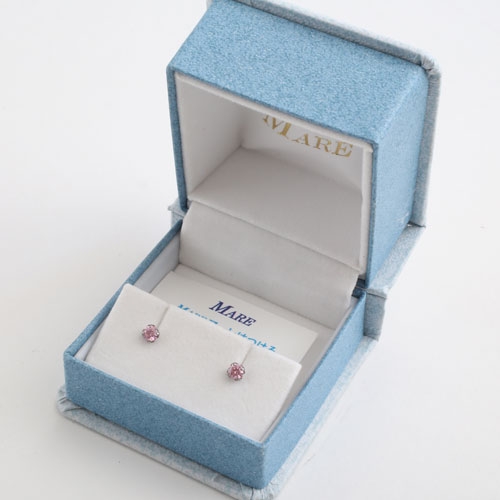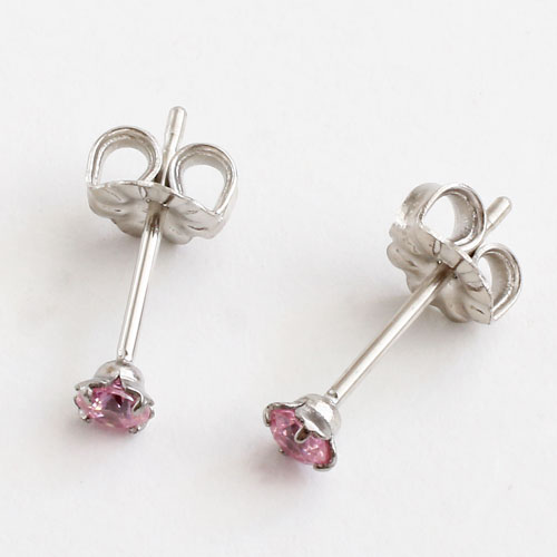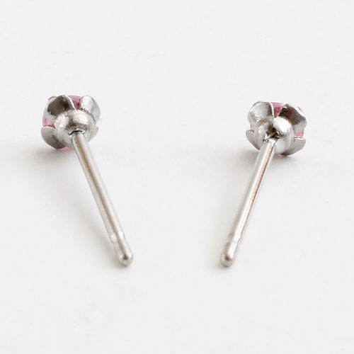 そのチタンにイオンプレートを施したポストとキャッチのピアス。。肌の敏感な方や金属アレルギーが心配の方にも安心。本体部分はスワロフスキーのピンクキュービックジルコニアを使用した高級品で、プレゼントにもおすすめです。