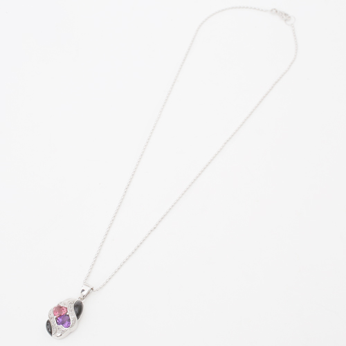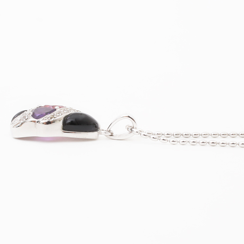 | 素材 | ・シルバー925(プラチナ仕上げ) ・ガーネット ・アメジスト(合計約1.4カラット) ・オニキス ・キュービックジルコニア |