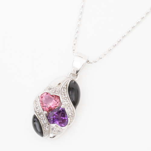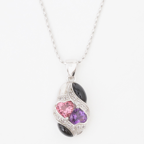 タイ製 シルバー925 天然石 キュービックジルコニア ペンダント ハート 1279-PS09