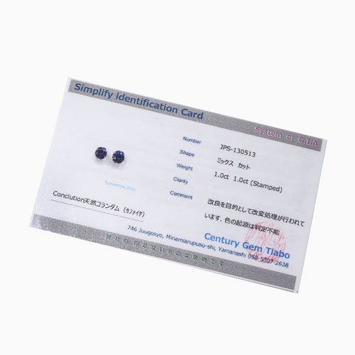 鑑別カード付!!合計2ct(片耳1ct)のサファイアは、しっかりとしたかなりの存在感と輝き、上品で日本人には最も好まれている色合いの一つです。
