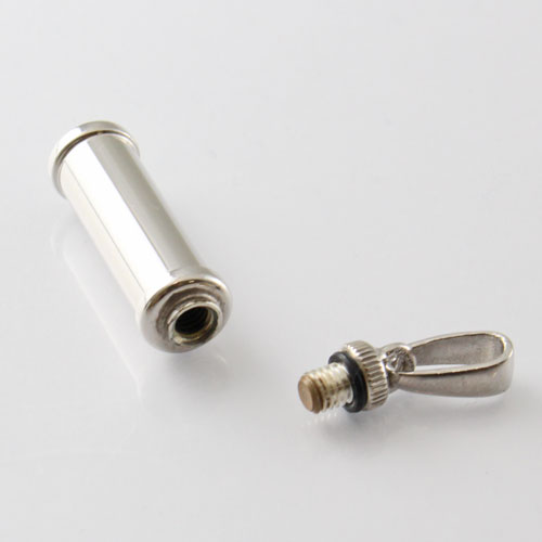 バチカン部分をねじって開け中に遺灰や遺髪を収めることができます。開口部は非常に小さいので、粉末状にしたものなどを時間をかけて丁寧に納めてください。