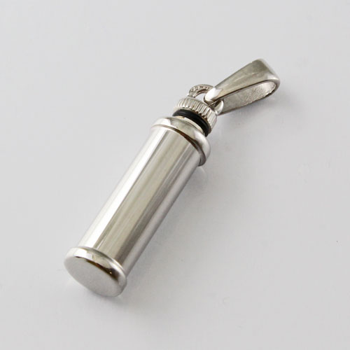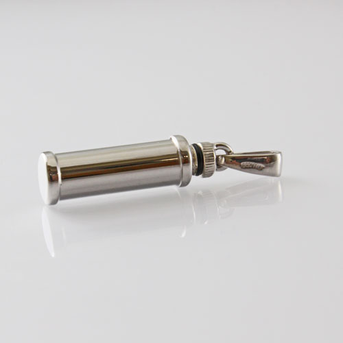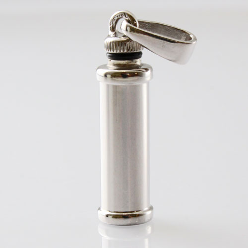 シンプルでペンダントとしても魅力の艶消し仕上げのコートピラー(宮殿の柱)・カロートペンダント。ドイツ製ならではの作りの良さとハイセンス、他ではなかなか見つかりません!!愛する人を偲び、いつまでも身に着けて、未来へ生きる力と勇気を与えてもらえるでしょう。仕上げも本当に良くて高級感がありますよ。また、ロジウム仕上げになっているので、重厚感が魅力ですね。バチカン部分をねじって開け中に遺灰や遺髪を収めることができます。開口部は非常に小さいので、粉末状にしたものなどを時間をかけて丁寧に納めてください。